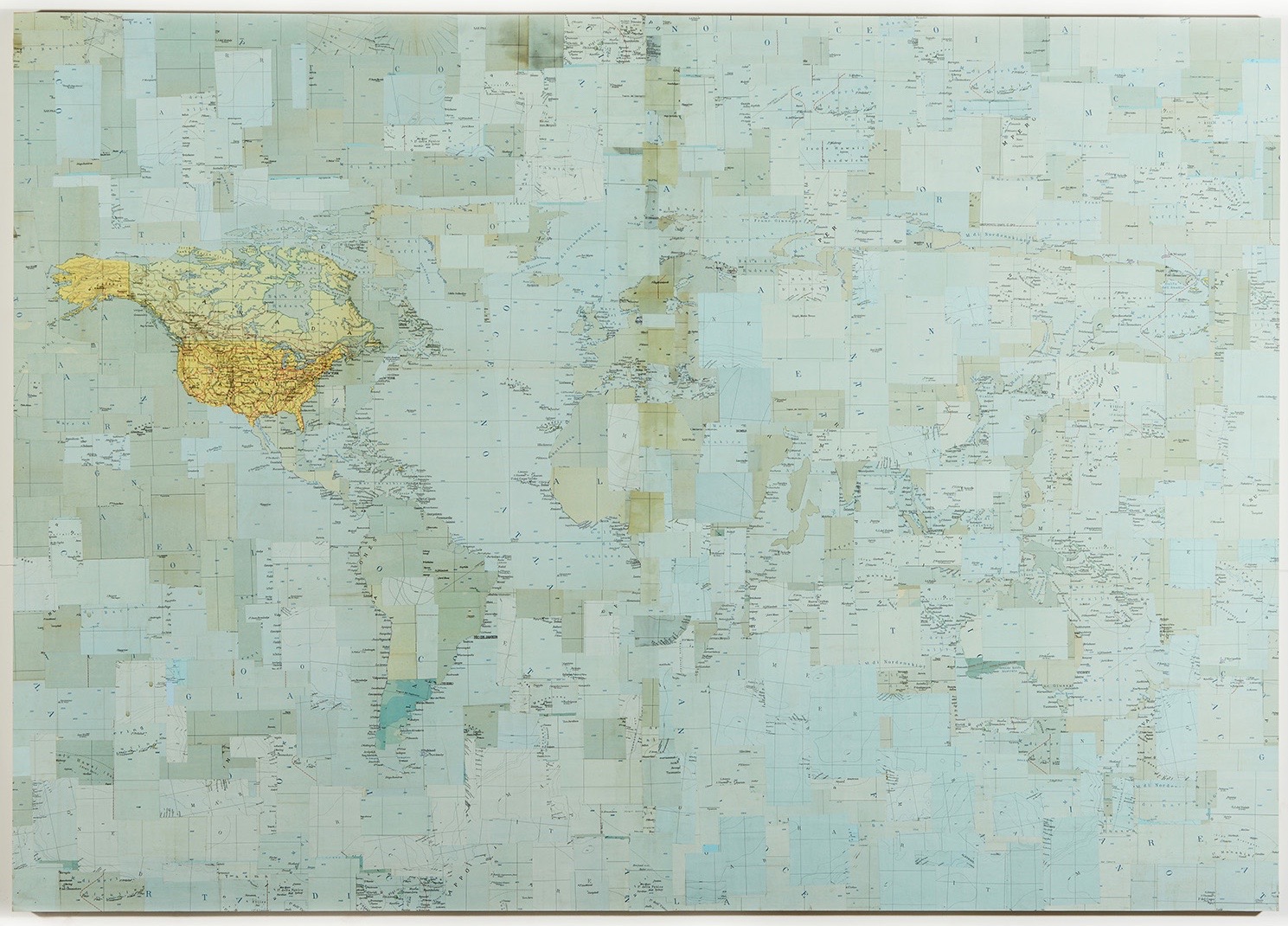 FF 006-25 | Americana, 2025, collage of maps on wooden panel, cm.99×140
